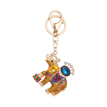 Colorful Diamond Elephant Keychain Thailand Metal Animal Bag Pendant Cartoon Style Promotional Carabiner Keychain