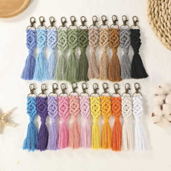 Pamuk halat makrome anahtarlık el yapımı thknitted örme dokuma bilek kayışı makrome Boho anahtarlık pamuk