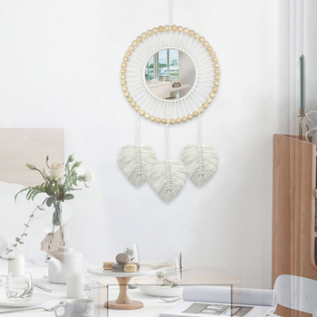 Güzel tasarımlar makrome duvara monte ayna yaprak ile en trend doğal bitirme noel dekorasyon oturma odası için